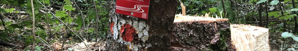 Am „Durchbruch“ nach dem Ringwall auf der Houbirg, dort wo man Richtung Reckenberg geht, wurden einige Bäume gefällt und wir finden es wirklich eine sehr nette Geste, dass die Forstarbeiter unsere Wegezeichen haben stehen lassen. DANKE für die Unterstützung; soetwas finden wir eine sehr noble Geste. (Stand 2018)